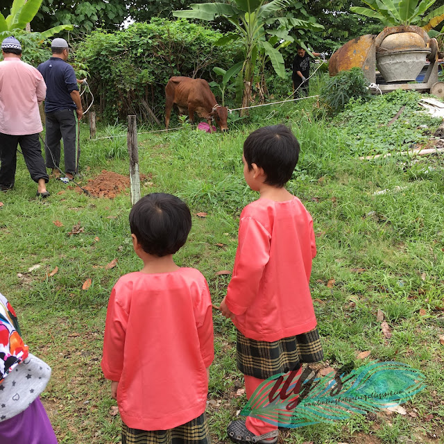 Previous years, usually ada at least 5 ekor lembu untuk ditumbangkan. Tahun ni, we didn't open to others. Anak-beranak je. Seekor lembu untuk qurban, seekor kambing untuk aqiqah.
